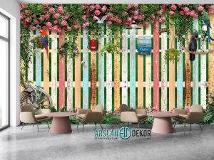 Ahşap Duvar Çiçek Bahçesi Desen Duvar Kağıdı