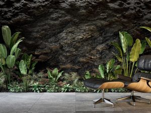 Beton Tropikal Yaprak Desen Duvar Kağıdı