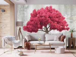 Pembe Ağaç Desen Duvar Kağıdı