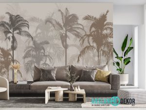 Soft Tropikal Orman Ağaçlar Desen Duvar Kağıdı