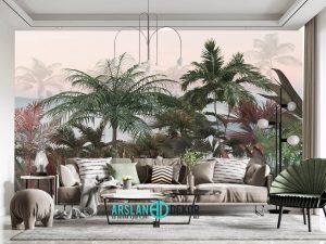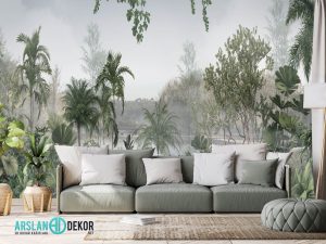 Tropikal Orman Ağaçlar Desen Duvar Kağıdı