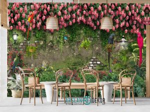 Çiçek Bahçesi Papağanlar Desen Duvar Kağıdı