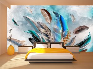 Kabartma Görünümlü Tüy Desenli Duvar Kağıdı