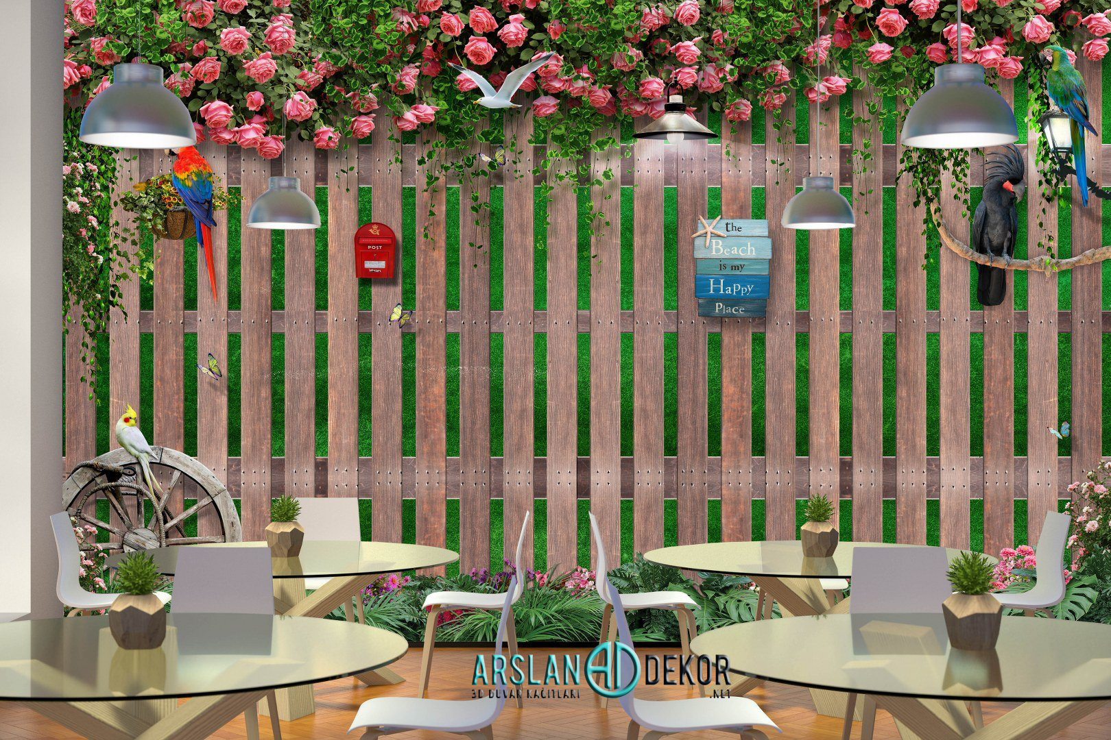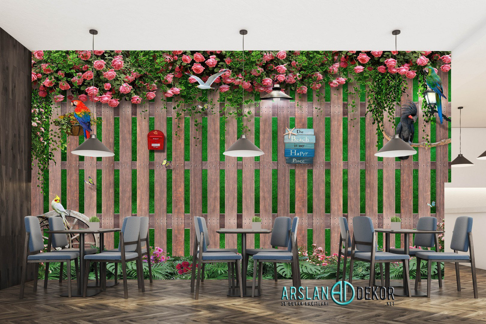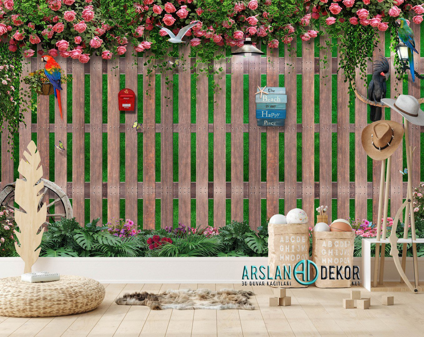 Ahşap Duvar Çiçek Bahçesi Desen Duvar Kağıdı