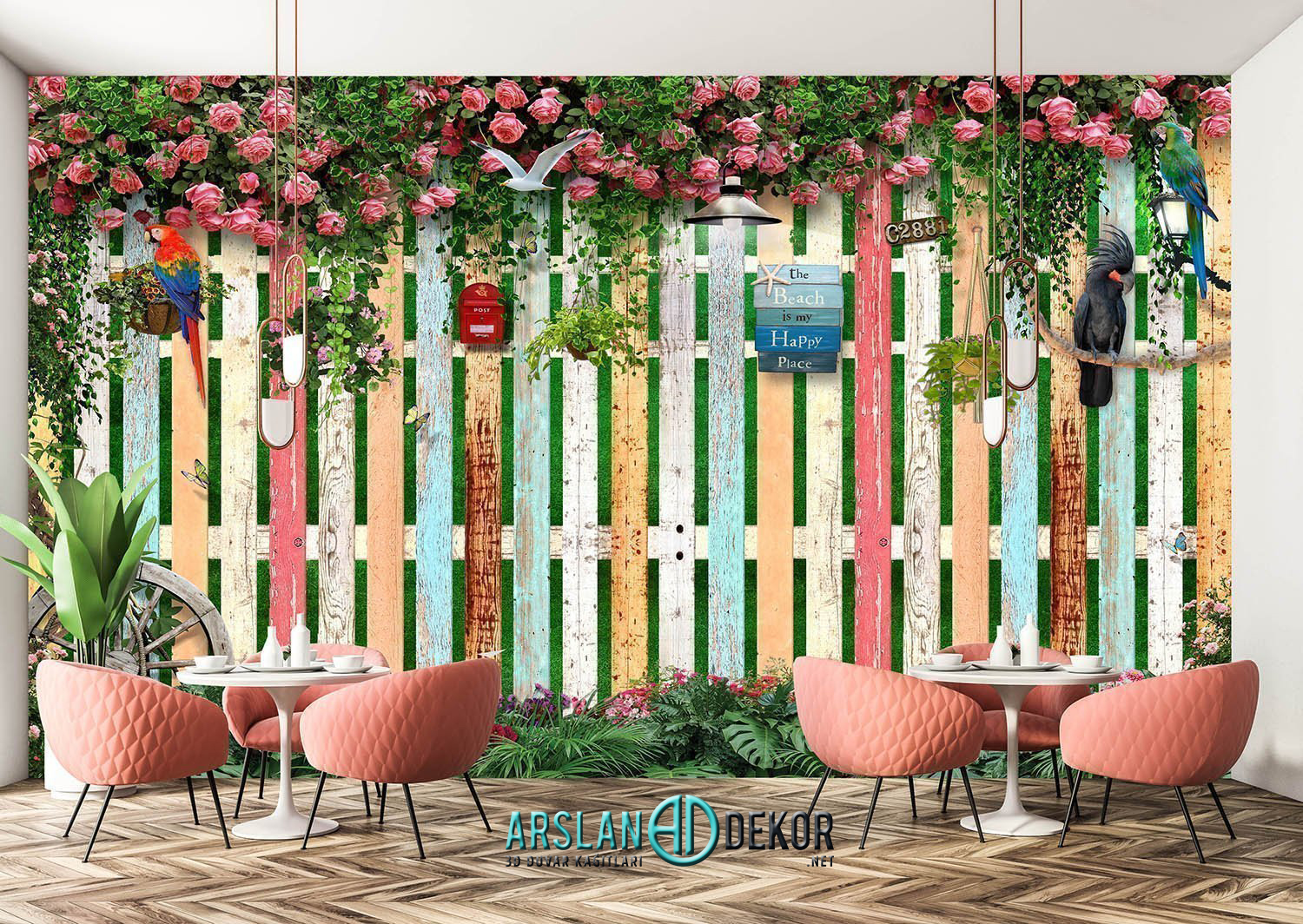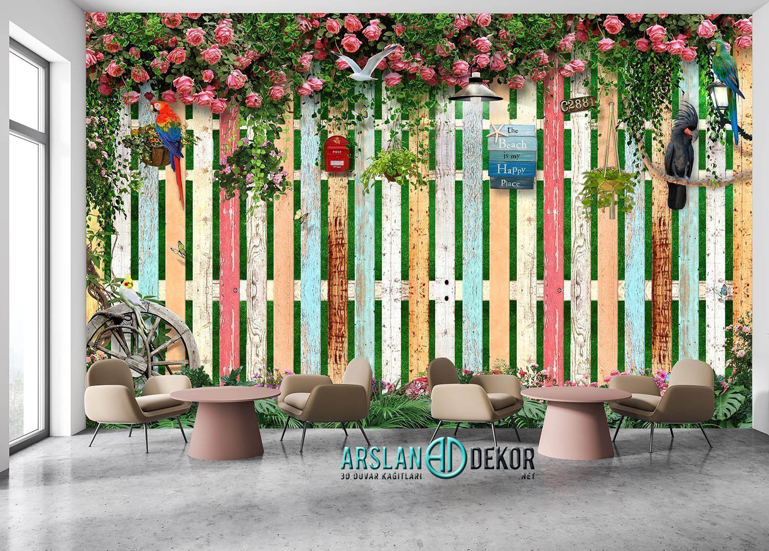 Ahşap Duvar Çiçek Bahçesi Desen Duvar Kağıdı