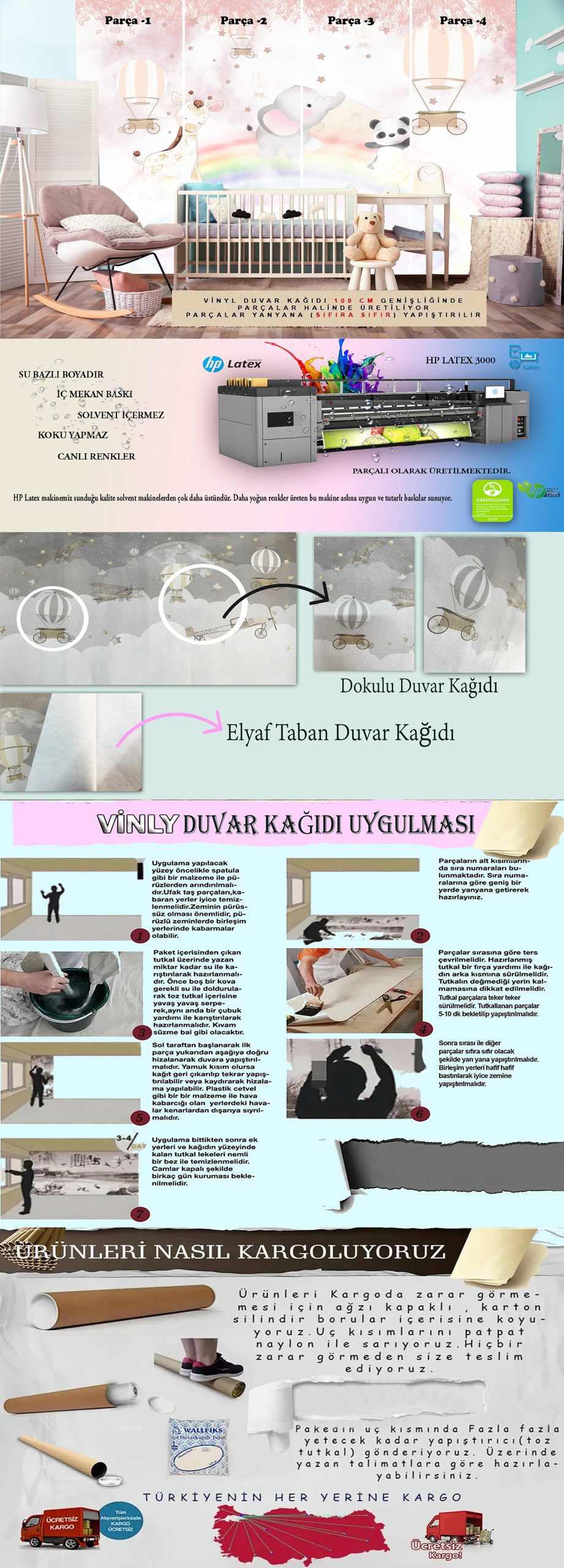 Hp latex ( Su Bazlı ) mürekkep kullanarak üretim yapılmaktadır.