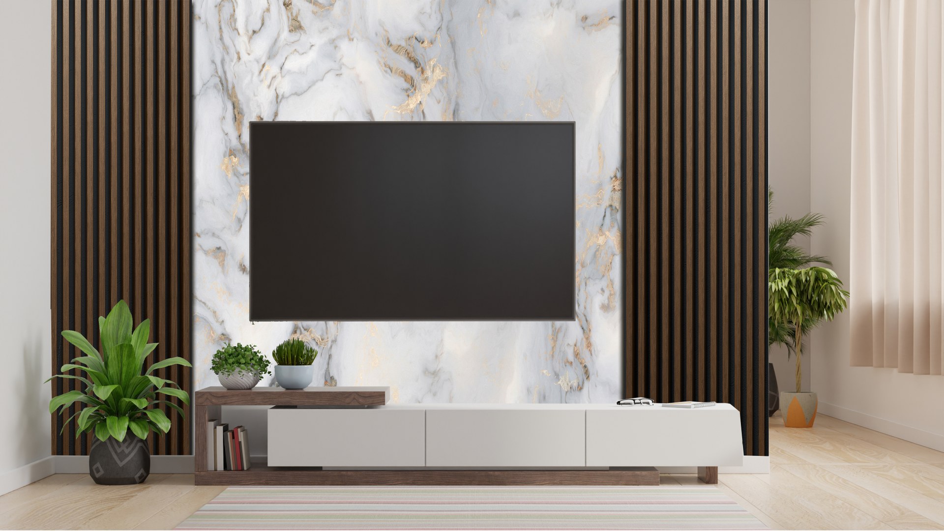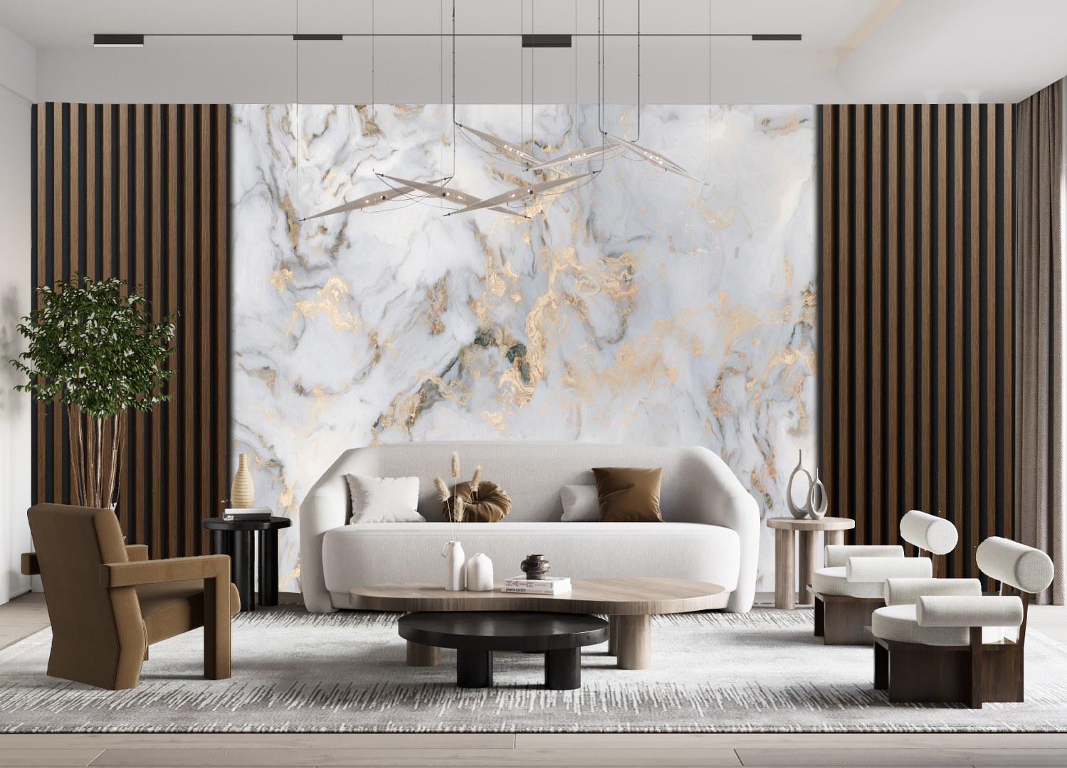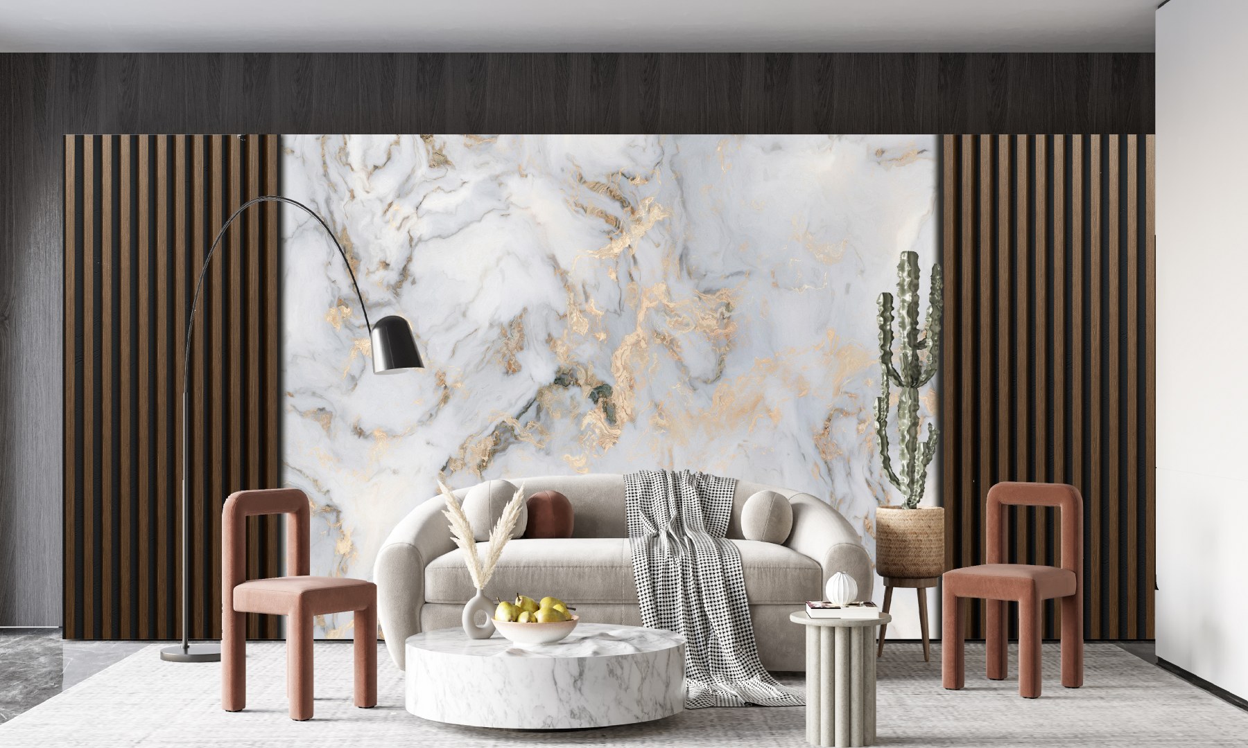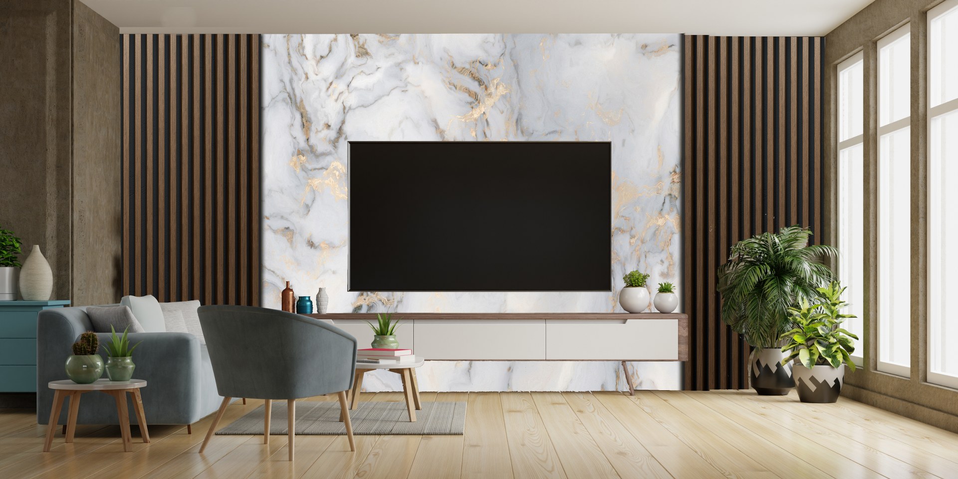 Ahşap Panel Görünümlü Mermer Desen Duvar Kağıdı