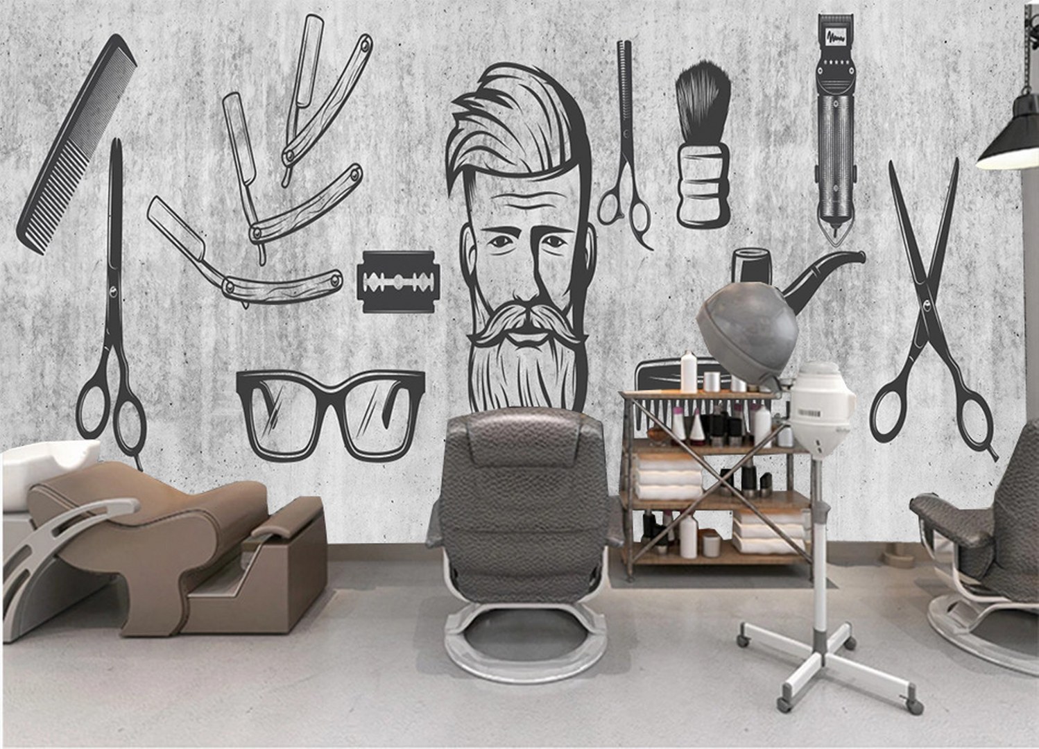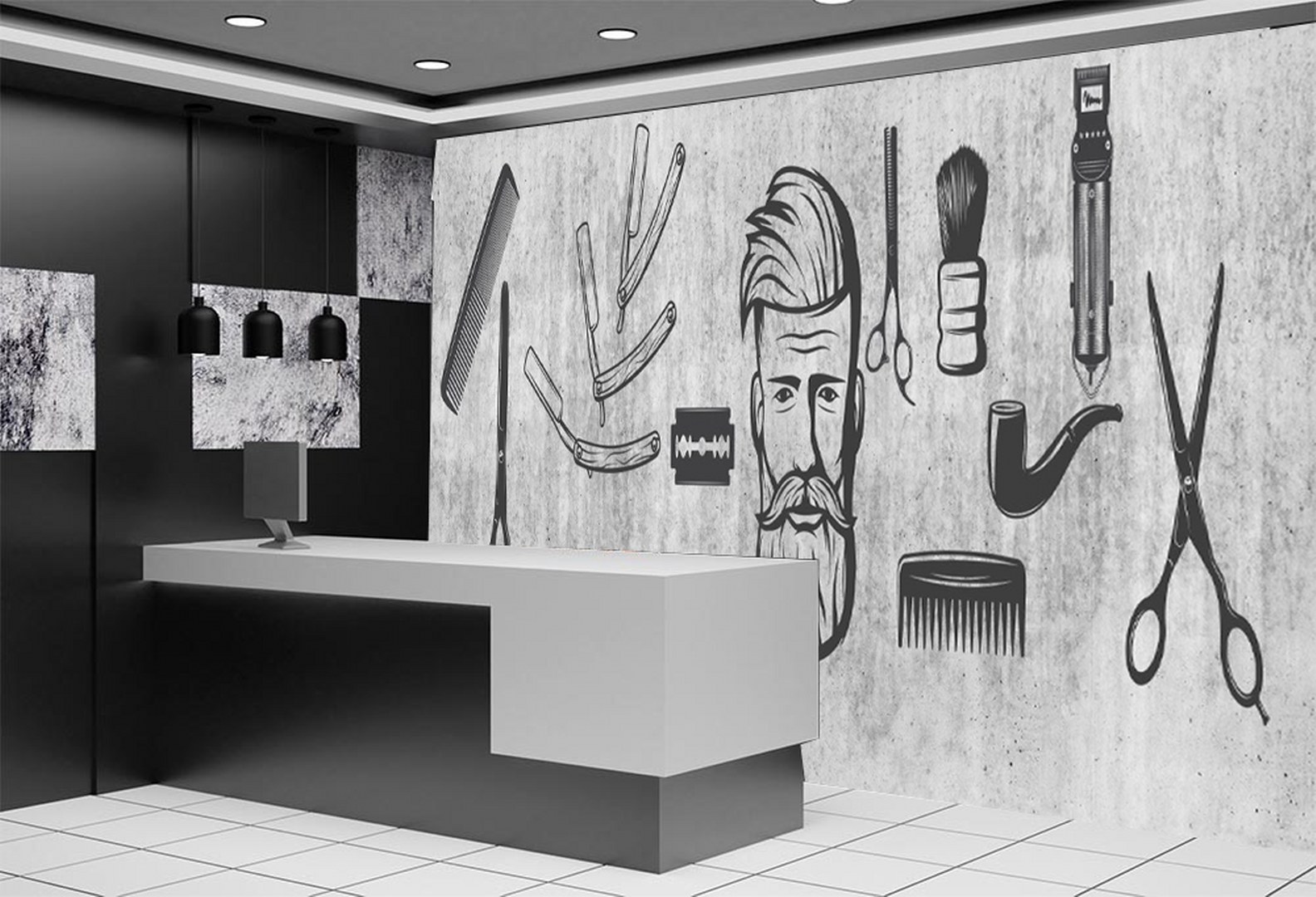 Berber Erkek Kuaför Desen Duvar Kağıdı
