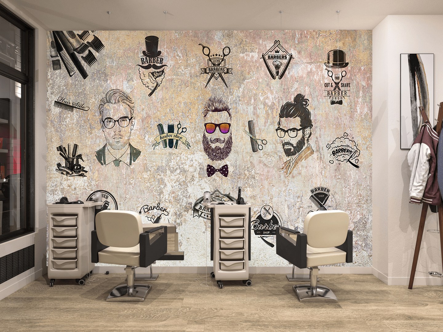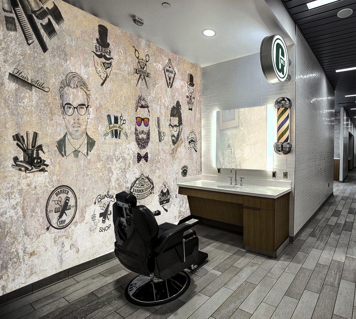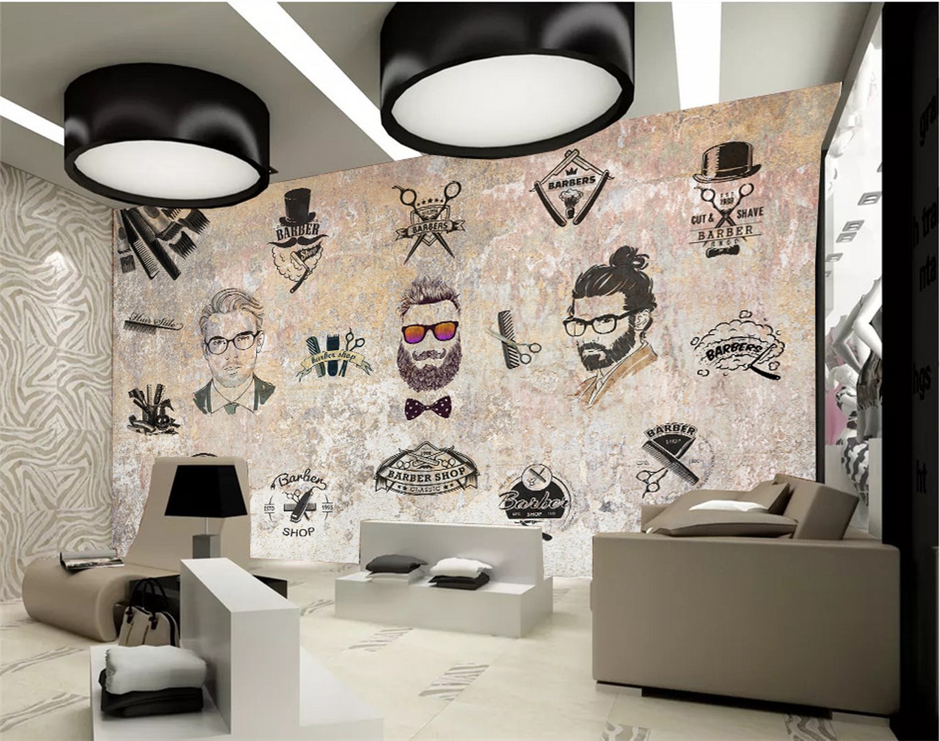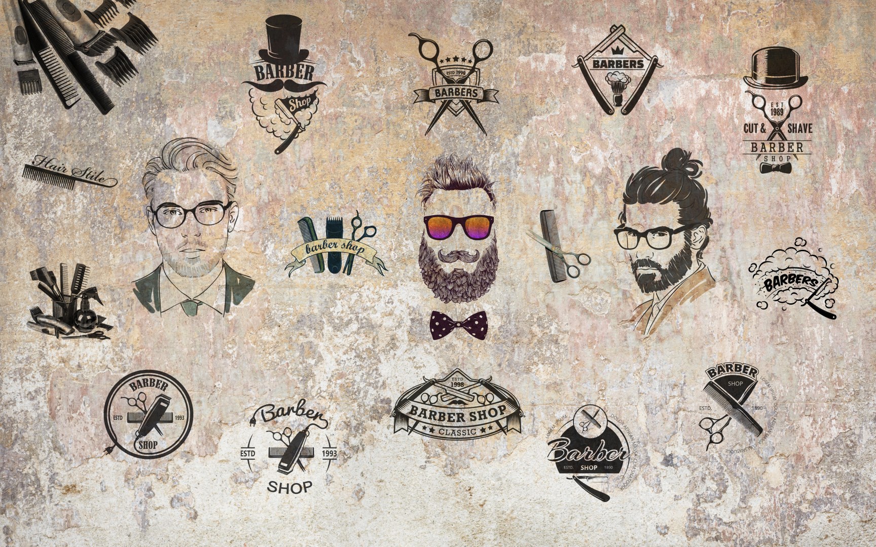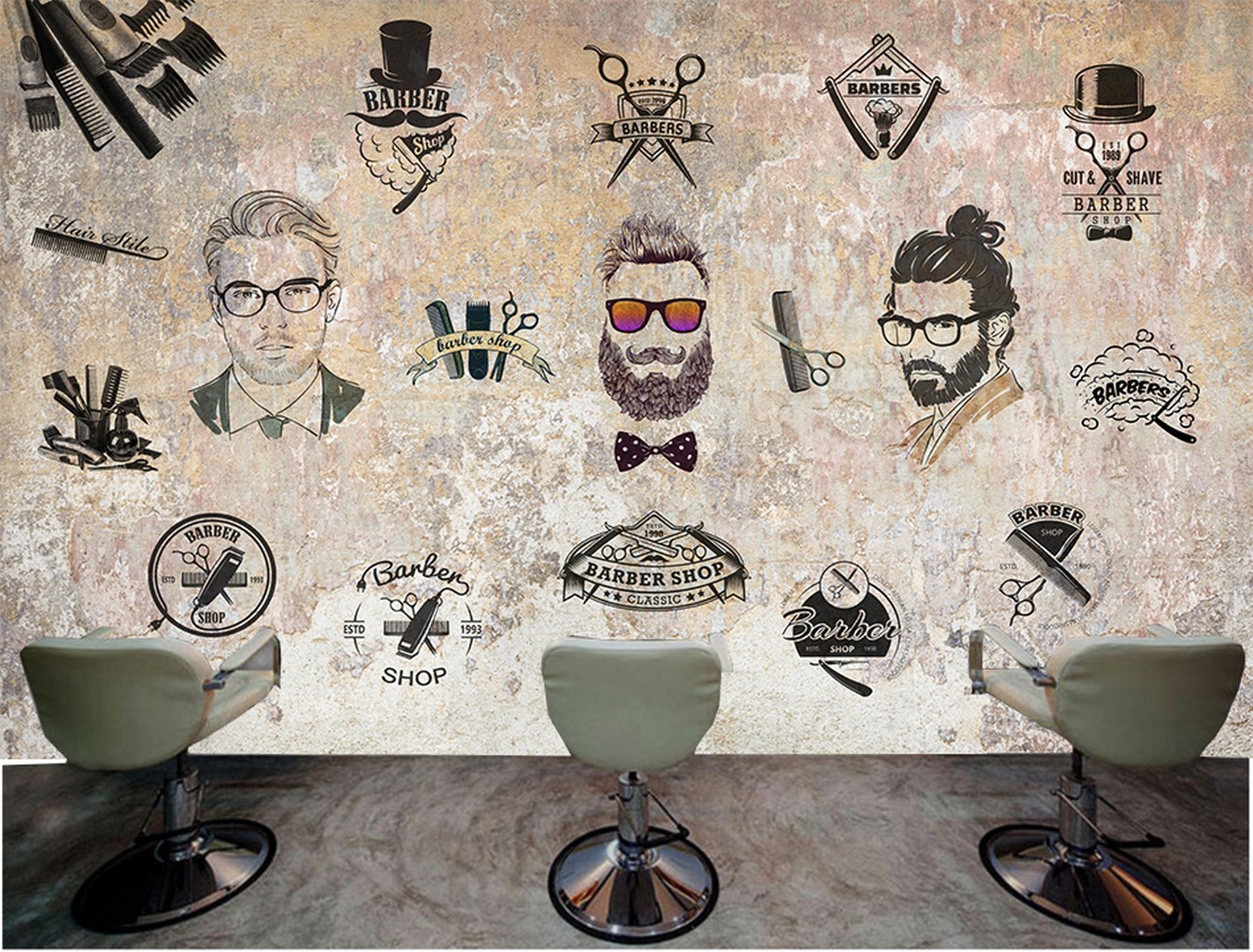 Berber Erkek Kuaför Desen Duvar Kağıdı