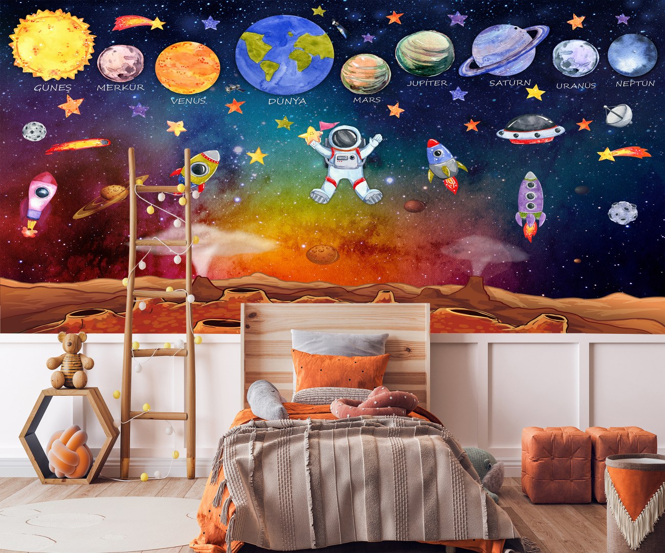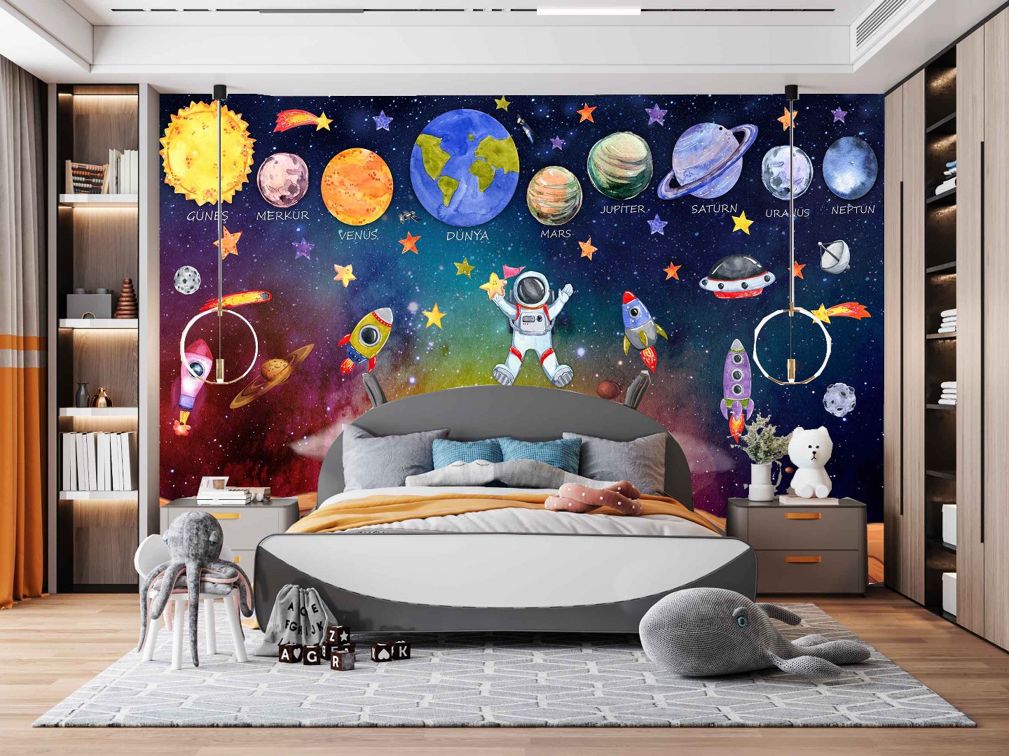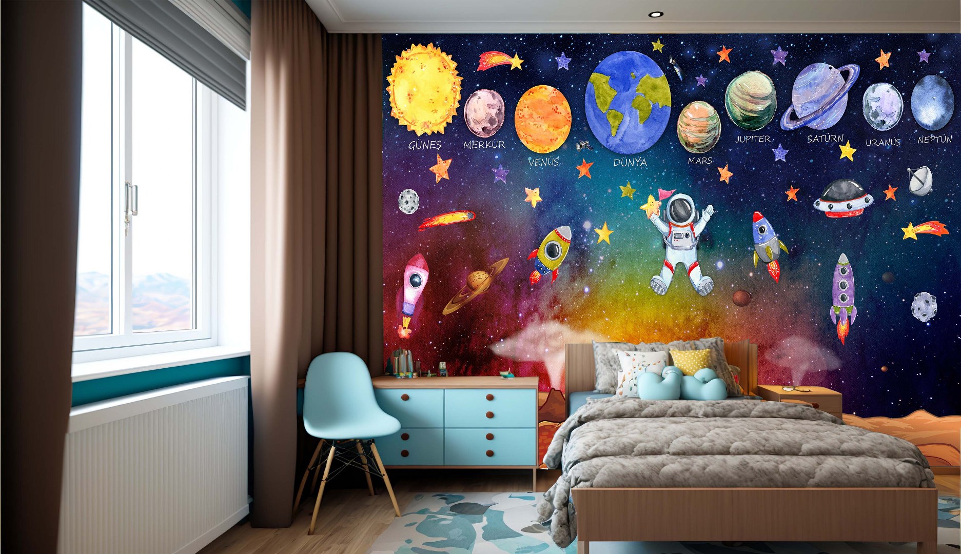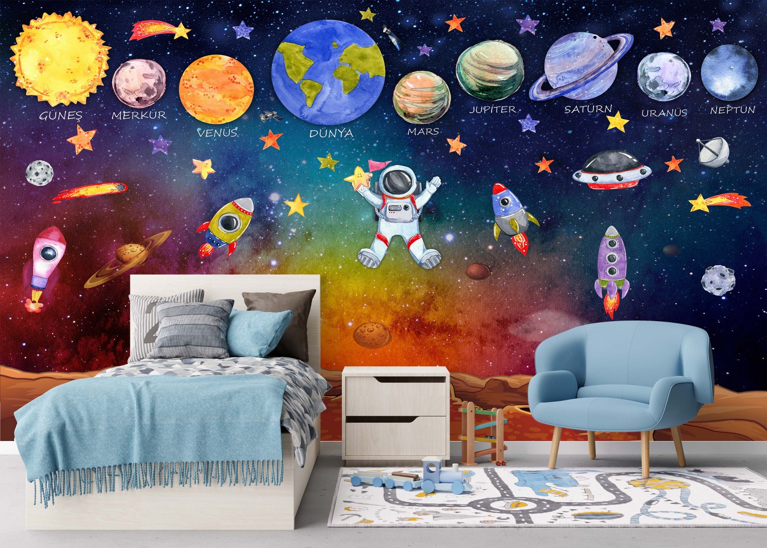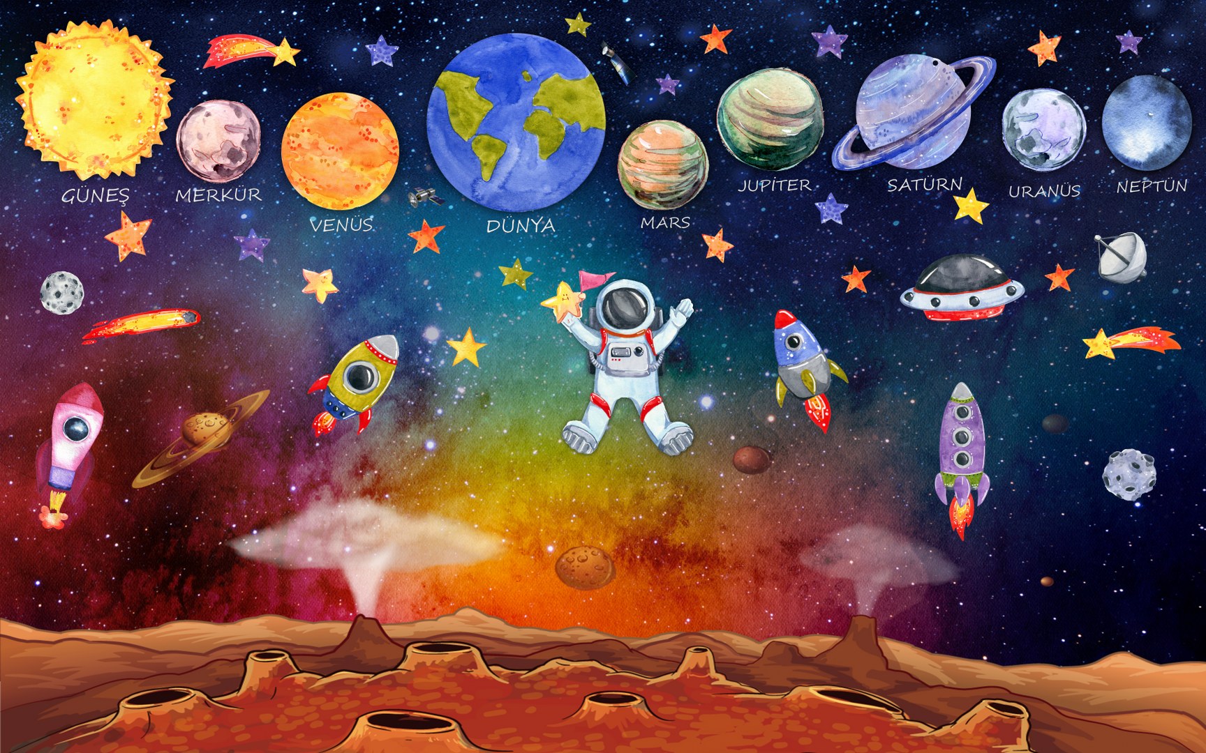 Uzay Gezegenler Asronot Roketler Çocuk Duvar Kağıdı